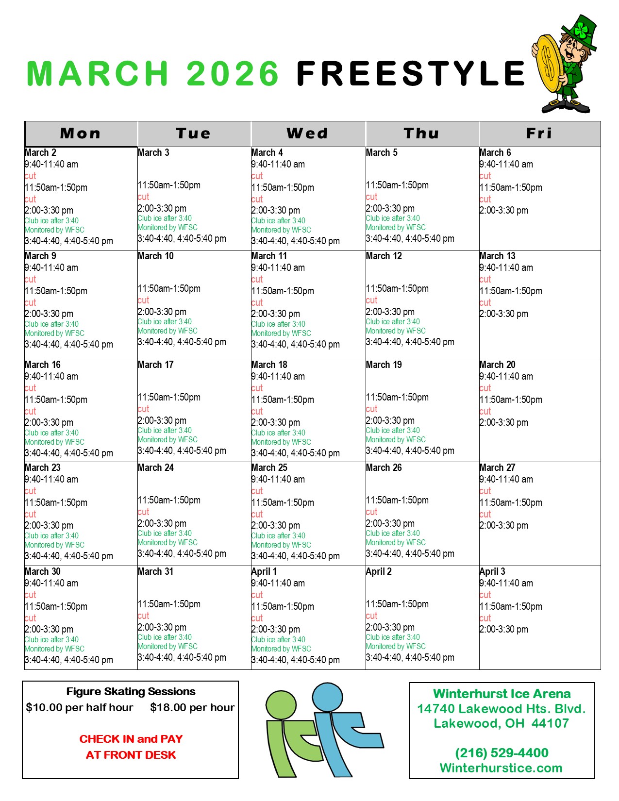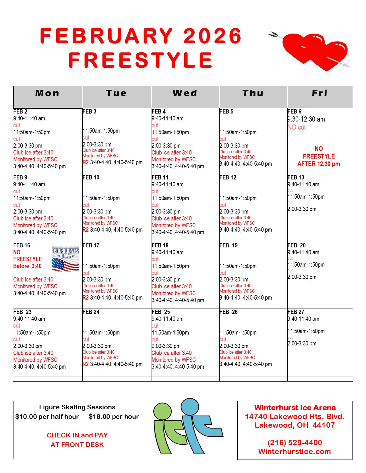 - Safety and Skill Development: With a focus on supporting figure skating growth, Freestyle Ice is structured to offer ample space and time for skaters to work on jumps, spins, and choreography without interruption.